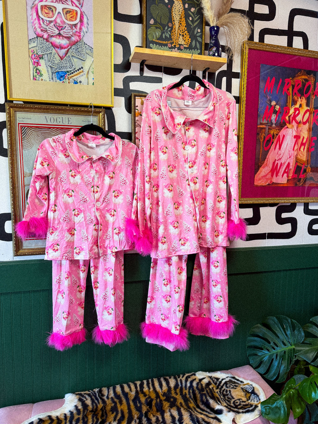 pink santa fur pajamas